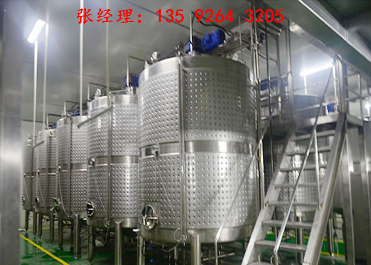 小型果酒生產設備有:果蔬清洗機,果蔬破碎打漿機,原水罐,原水泵,石英砂過濾器,活性碳過濾機,加藥裝置,RO反滲透主機,紫外線殺菌器,純水罐,恒溫化糖罐,攪拌配料罐,糖漿過濾器,恒溫發酵罐,過濾機,熟成罐,殺菌設備,消毒浸泡洗瓶機,灌裝封口,瓶蓋殺菌機,燈檢設備,吹干機,貼標機,噴碼機等設備組成。