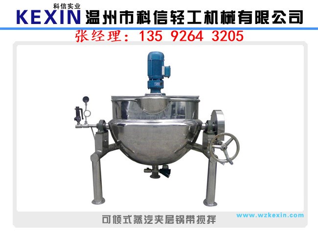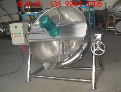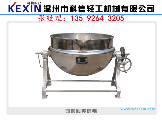 夾層鍋又名蒸汽鍋、蒸煮鍋、夾層蒸汽鍋。通常由鍋體和支腳組成。鍋體是由內外球形鍋體組成的雙層結構形式,中間夾層通入蒸汽加熱。有固定式、可傾式、攪拌式等樣式。夾層鍋具有受熱面積大、熱效率高、加熱均勻、液料沸騰時間短、加熱溫度容易控制、外型美觀、安裝容易、操作方便、安全可靠等特點。夾層鍋廣泛應用于各類食品的加工,也可用于大型餐廳或食堂熬湯、燒菜、燉肉、熬粥等,是食品加工提高質量、縮短時間、改善勞動條件的良好設備。