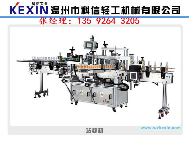 適用于食品、日化、化狀品、精細化工及其它輕工行業(yè)中的穩(wěn)定可站立低重心圓瓶或近似圓瓶包裝容器外表面圓周自動貼標之理想設備。